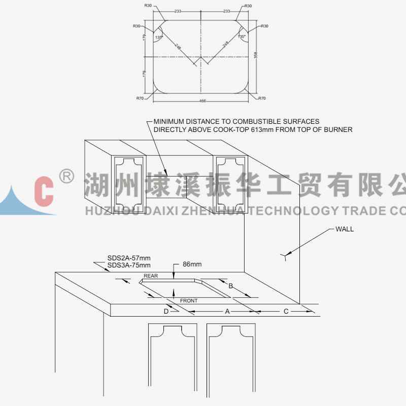 孔尺寸(长*宽*倒角):510mm * 380mm * 130mm